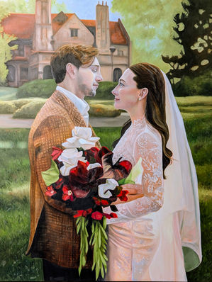 Many couples also commission a studio portrait from their wedding photographs as a companion to their live wedding painting.